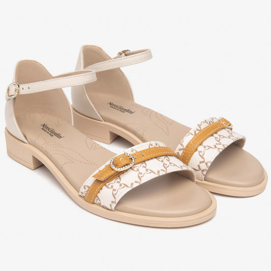 Sandali NeroGiardini donna pelle beige inserti ocra