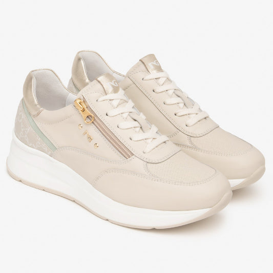 Sneakers NeroGiardini donna pelle beige con zeppa