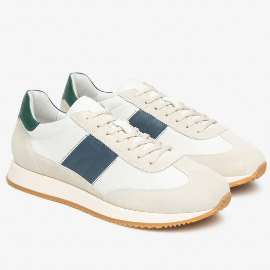 Sneakers NeroGiardini uomo pelle bianco inserti verde e blu