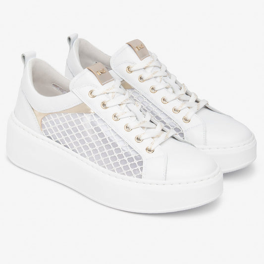 Sneakers NeroGiardini donna pelle bianco inserti oro
