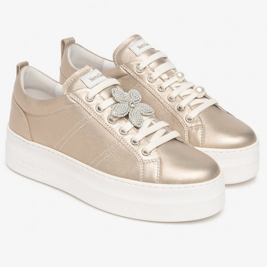 Sneakers NeroGiardini donna pelle platino inserto fiore