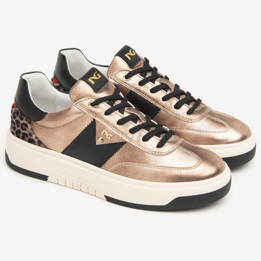Sneakers NeroGiardini donna pelle platino inserti animalier