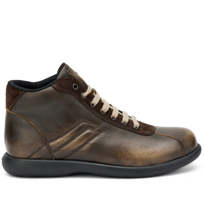 A reimagined icon: the historic FRAU model returns in a brand-new version with used-effect leather, releasing a bold and authentic spirit. Perfect for everyday use.