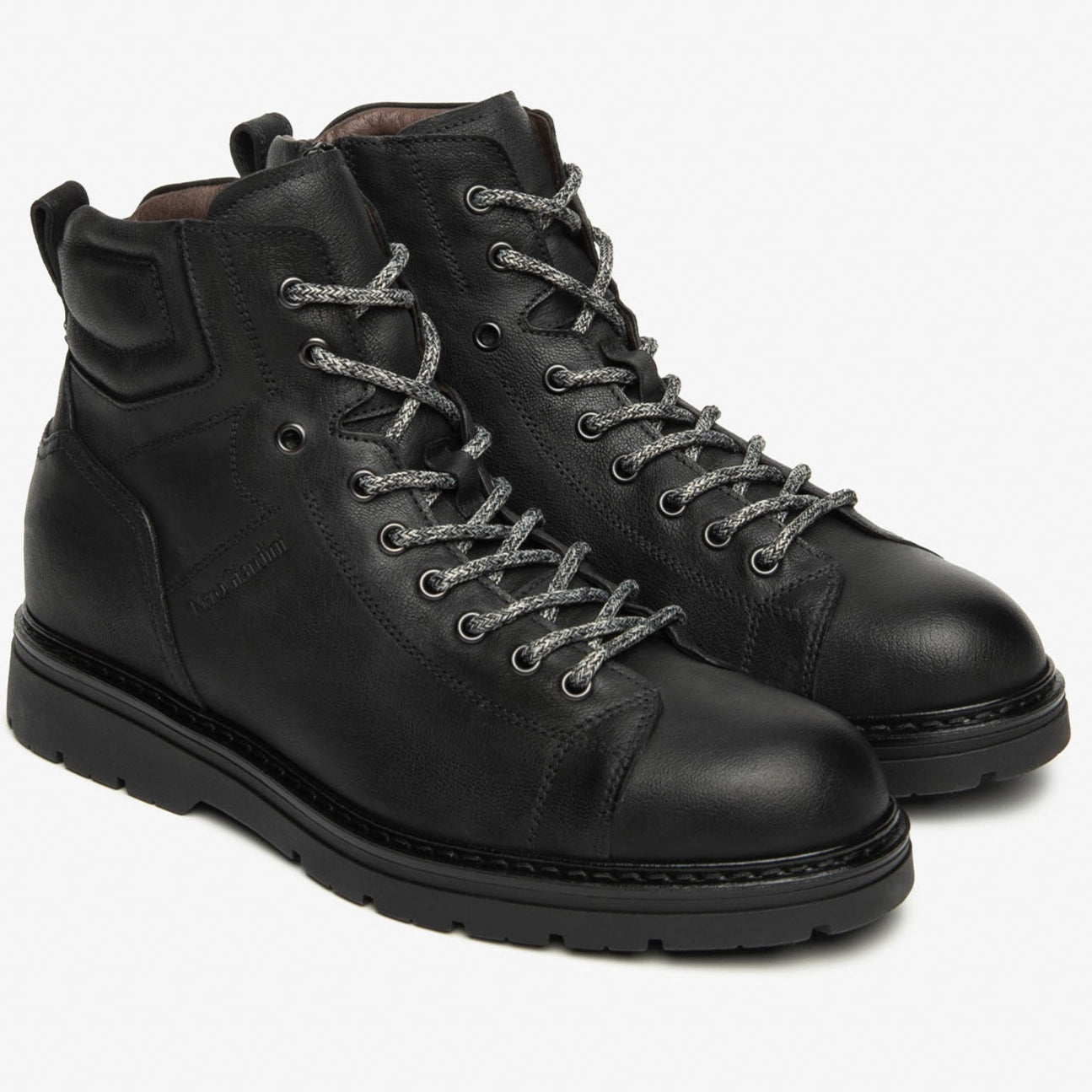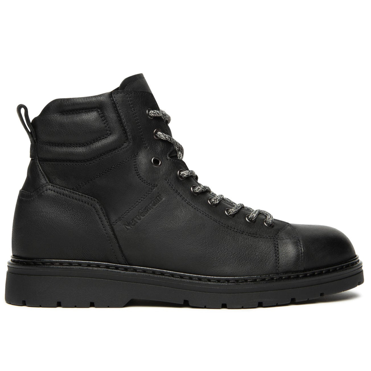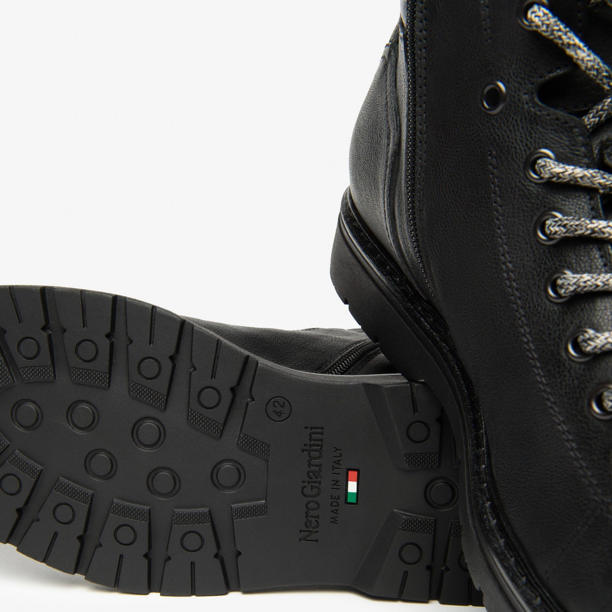 Anfibi NeroGiardini uomo in pelle liscia colore nero con lacci grigio.