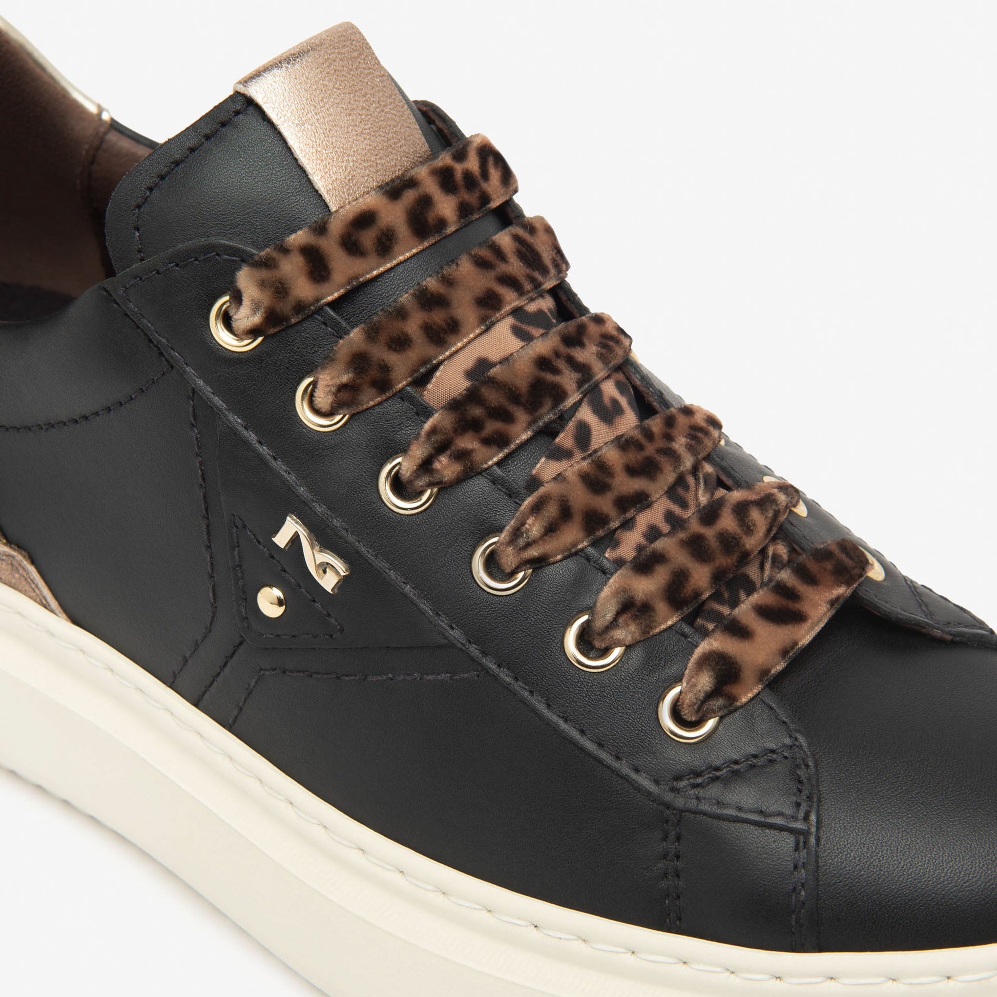 Sneakers NeroGiardini donna pelle nero lacci animalier