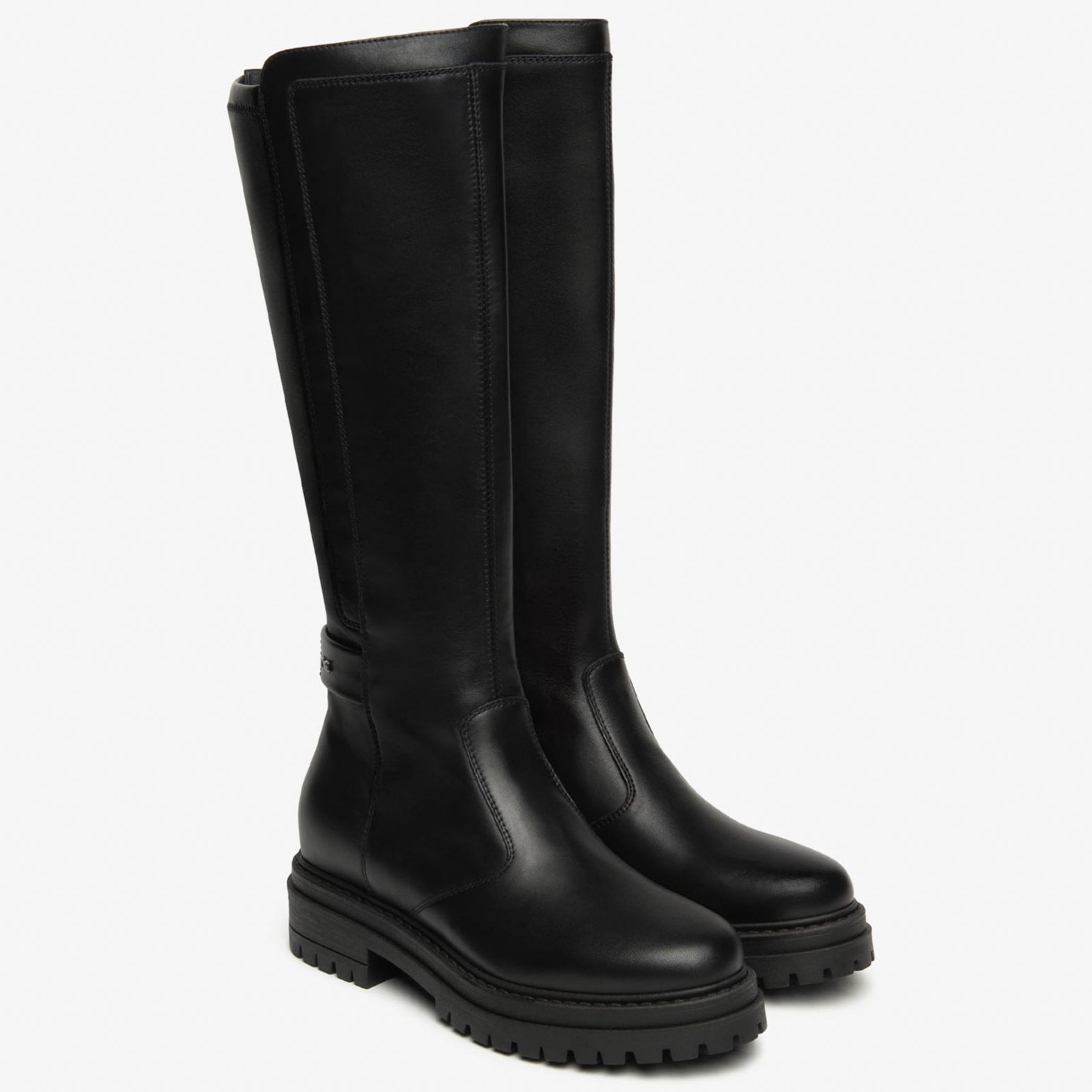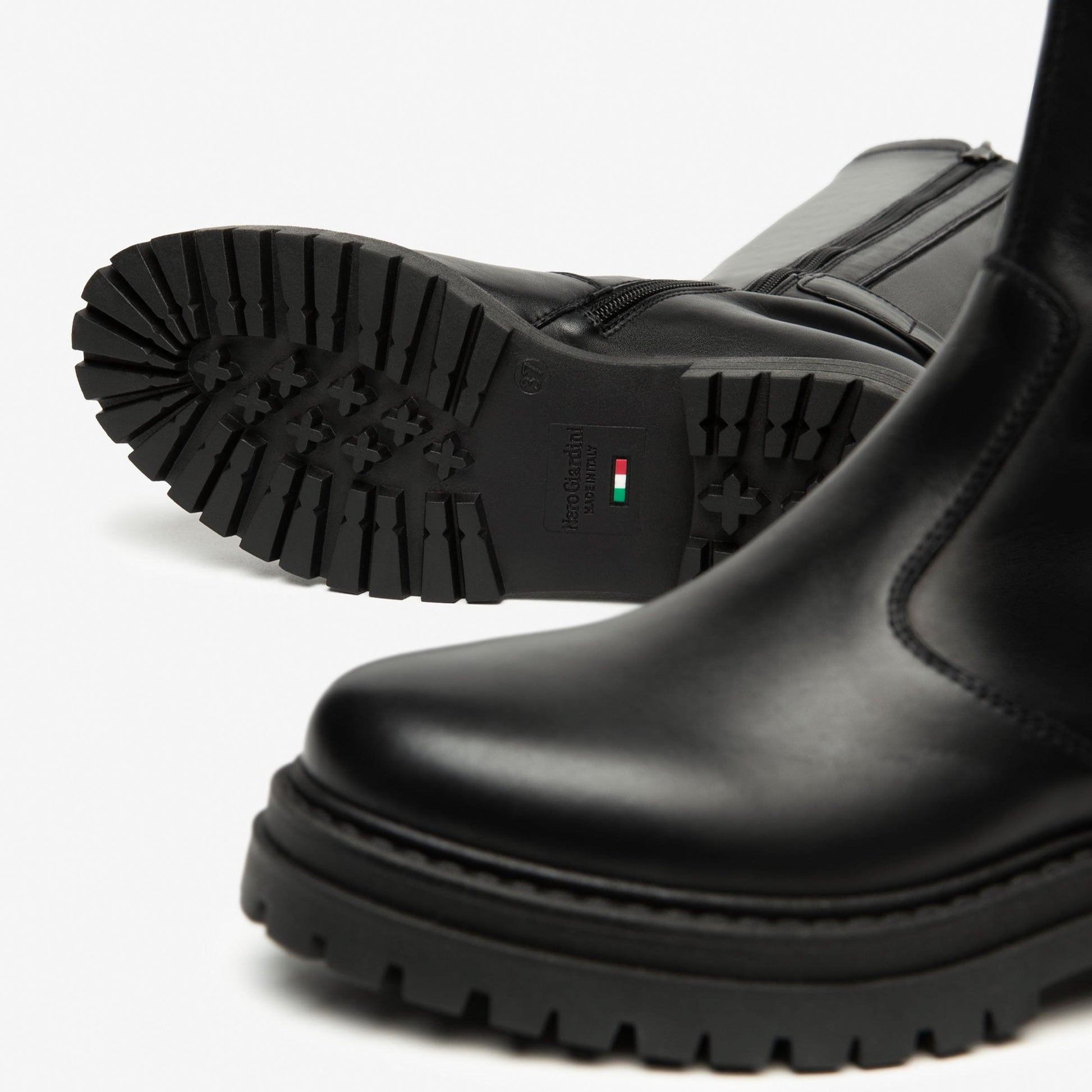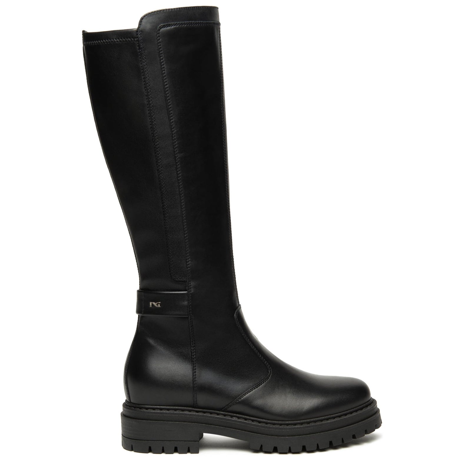 Stivali alti NeroGiardini donna in pelle colore nero con zip interna. Presenza di tacco a blocco 4 cm.